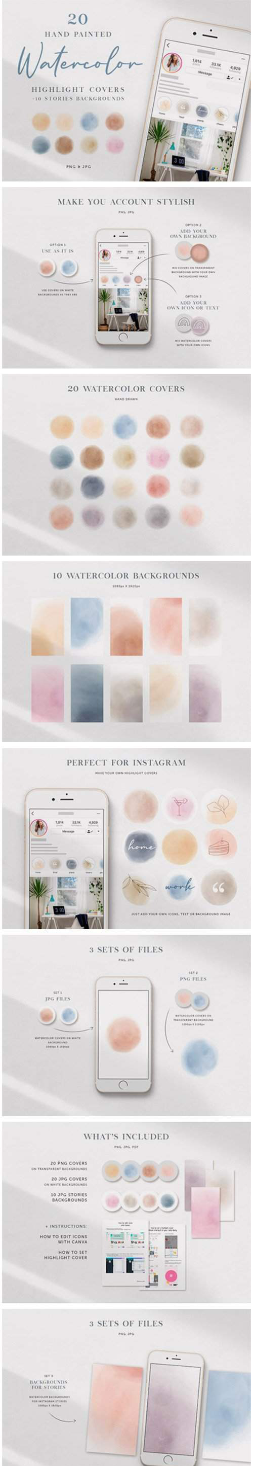 Natural hand painted watercolor Instagram highlight covers and stories backgrounds are the perfect way to style up your Instagram profile with covers for your Instagram Stories. These tender covers are great for bloggers, small business owners, makeup artists, photographers, event planners, designers, influencers and more!